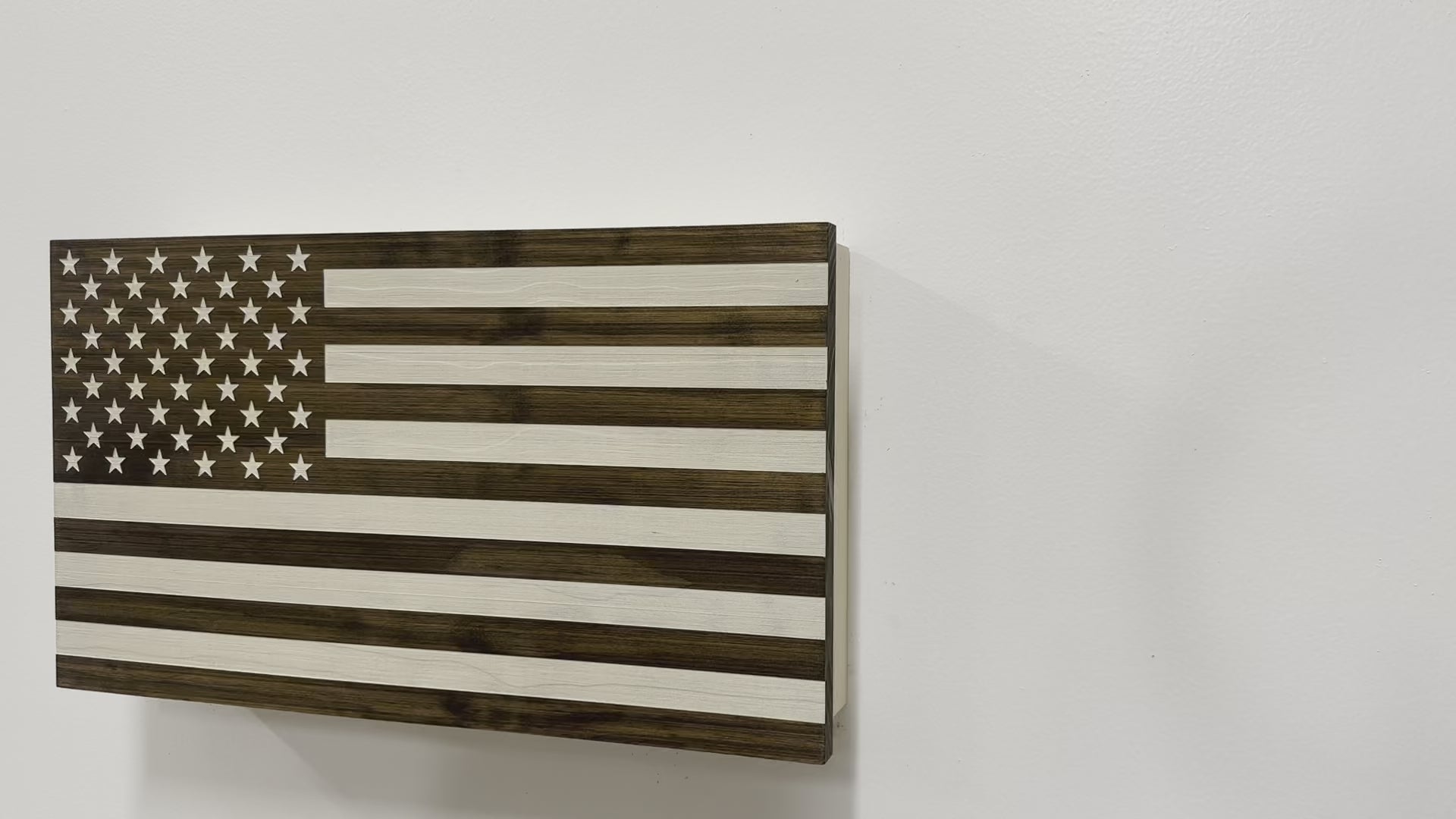 American Flag Decorative & Secure Wall-Mounted Gun Cabinet (Dark Walnut)