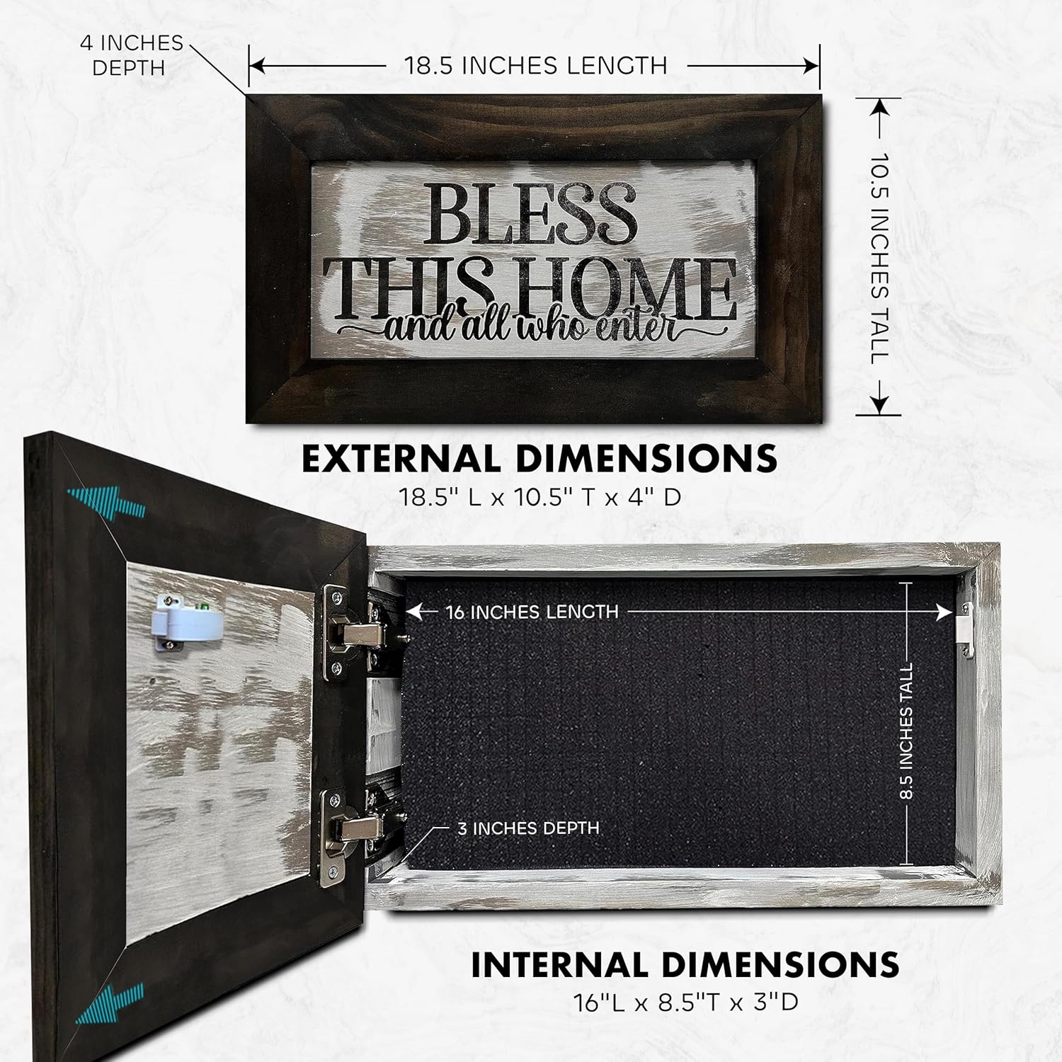 Bless This Home and All Who Enter Hidden Gun Storage Wall Decor - Hand-Painted Gun Concealment Decor - Gun Shelf Hidden Storage with Magnetic Lock for Quick Access - Made In USA