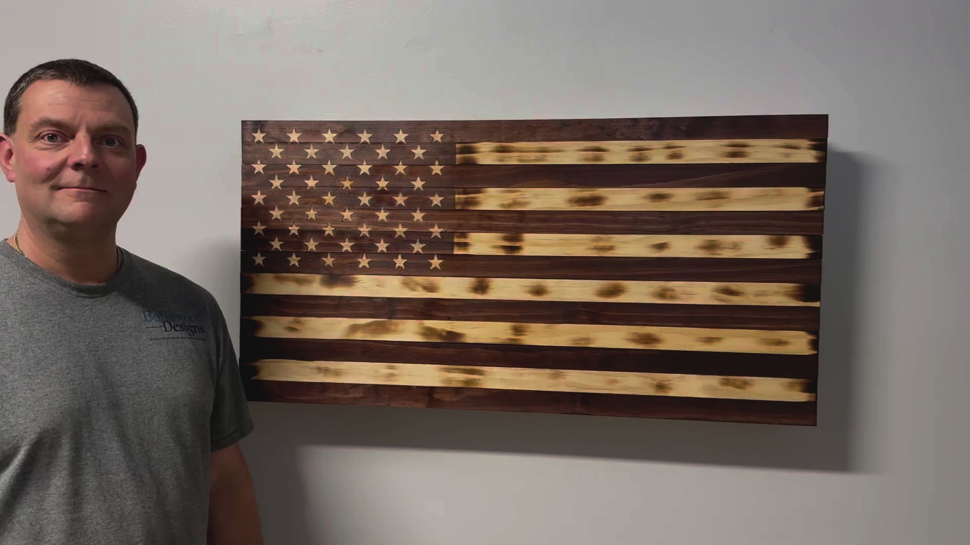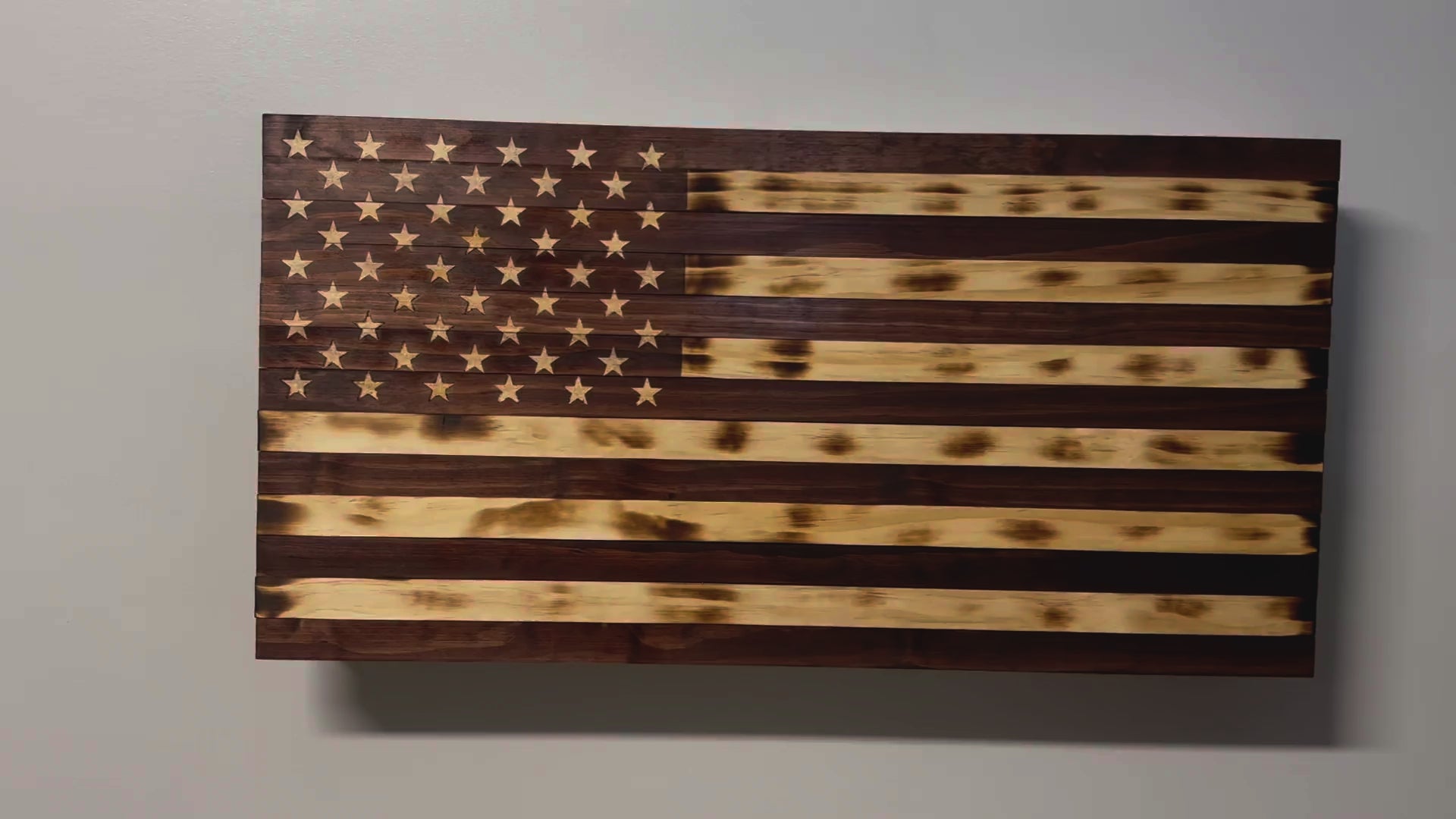 Rustic American Flag Hidden Gun Storage Cabinet Burnt Wood and Red Mahogany