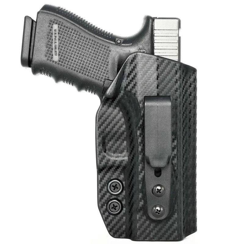 Each Tuckable IWB Holster fits: Glock 19 19X 23 32 45 is Crafted and Formed over our Proprietary, Precision Aluminum Molds. Our molds are CAD designed and milled in house so we can ensure the consistency, fit, quality, durability, lightness, comfort, & uniformity of features for each and every holster we make, regardless of the gun it is for.